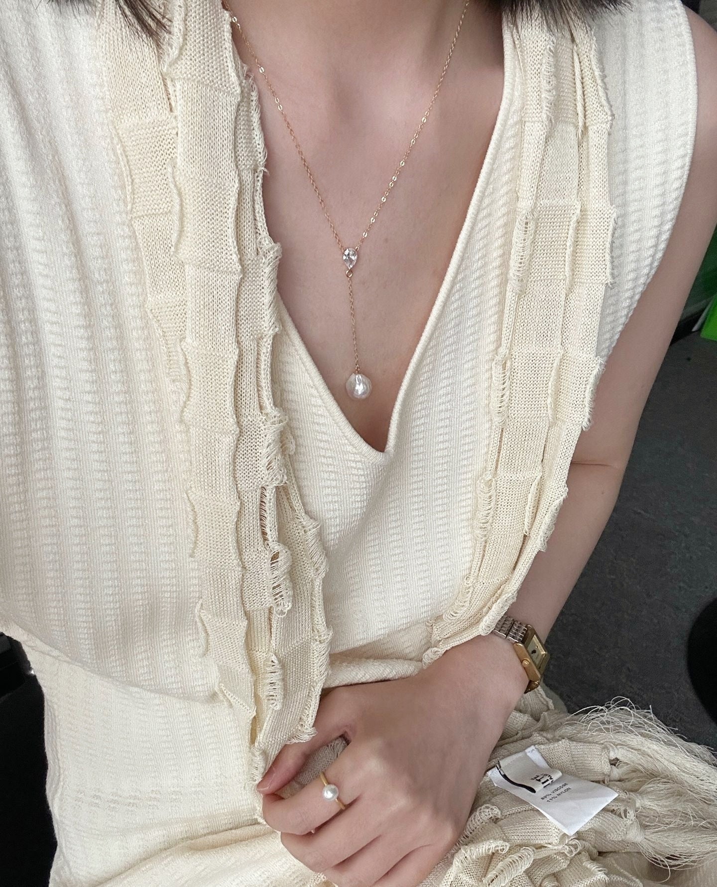 -Perle barocche naturali d'acqua dolce.Zircone con oro dorato