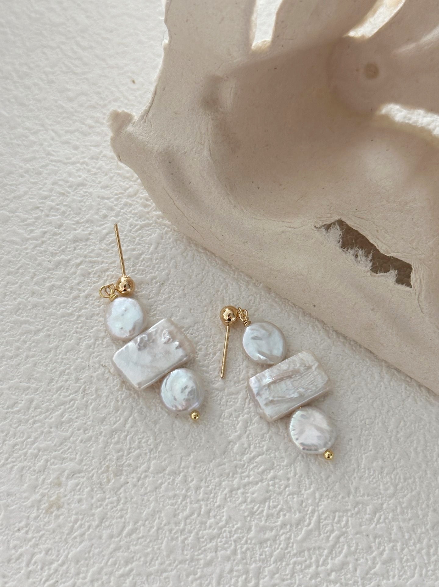 Orecchini con perle barocche quadrata e rotonda